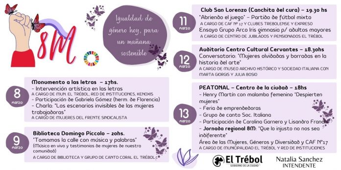 La Municipalidad de El Trébol en conjunto con instituciones de la ciudad, organizaron una serie de actividades artísticas y conmemorativas desde el 8 al 13 de marzo, bajo el lema “Igualdad de género hoy para un mañana sostenible”.
