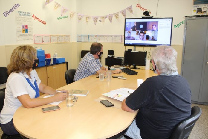 En el mediodía de viernes, el coordinador de Comercio e Industria, Mario Gambetta; la coordinadora de Desarrollo Urbano, Arq. Lucrecia López y el coordinador de Medio Ambiente, Ing. Mario Rosso, mantuvieron una reunión vía online desde el Punto Digital.