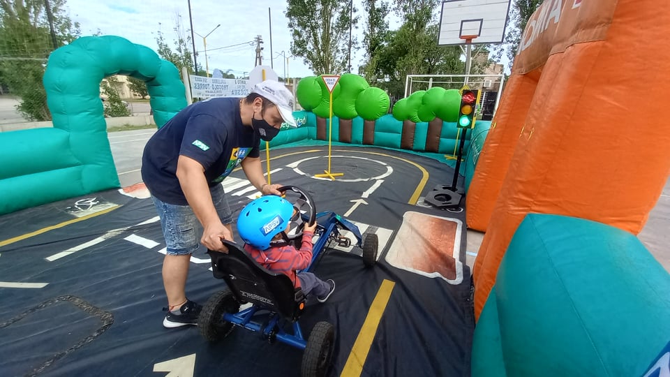 En la tarde del sábado, el Circuito Inflable Vial de la APSV regresó a la ciudad y convocó a decenas de niños y niñas que se sumaron a la propuesta.