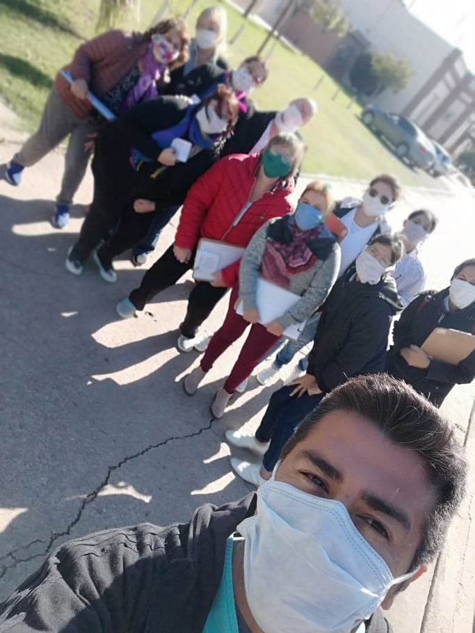 En primer lugar, el personal administrativo, de enfermería, de servicios generales y de diferentes áreas del SAMCo local, llevó adelante el bloqueo sanitario en un radio de nueve manzanas, comprendidas entre calles Bruselas y Malvinas Argentinas y entre calle Dorrego y las vías del ferrocarril.