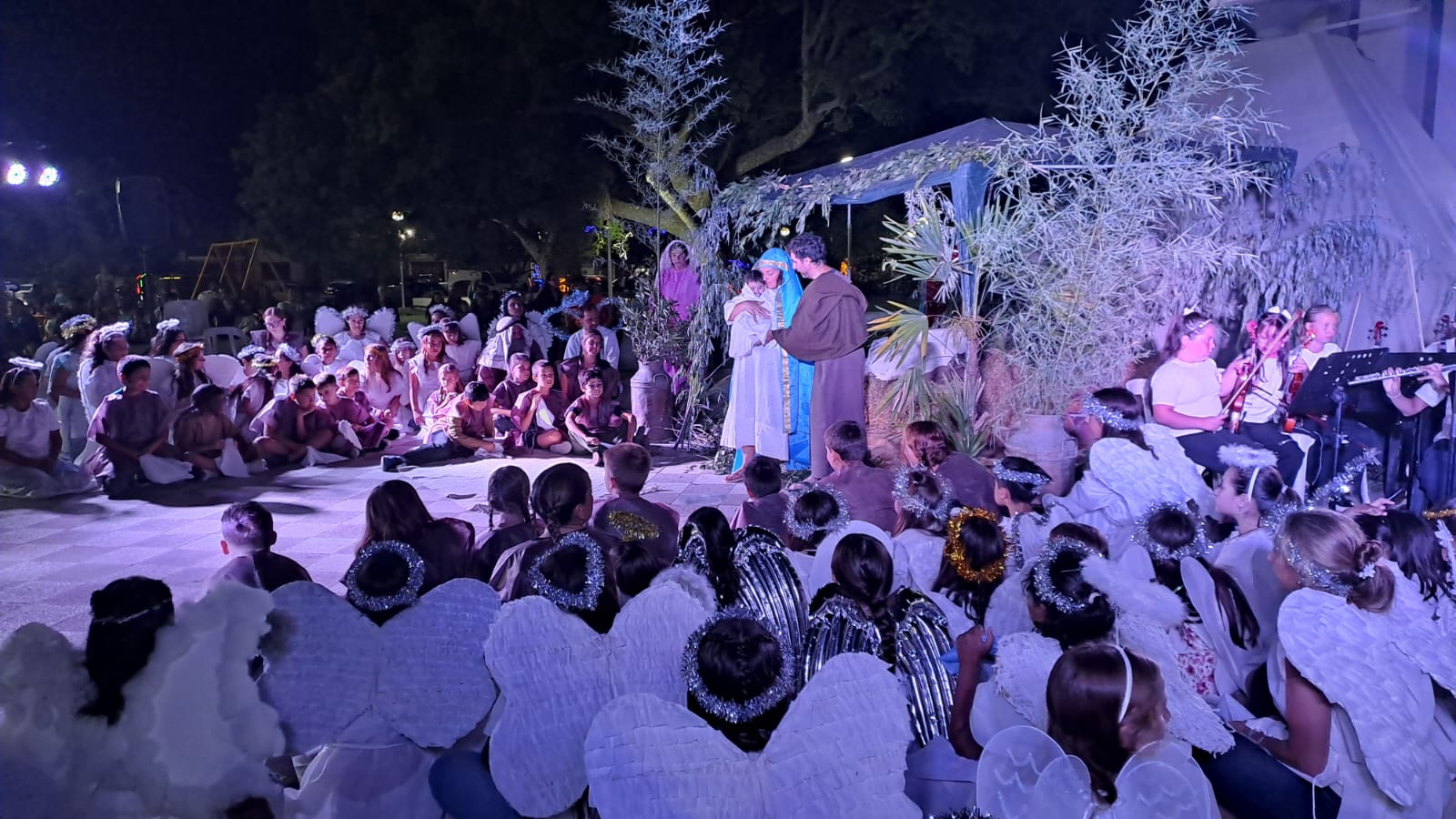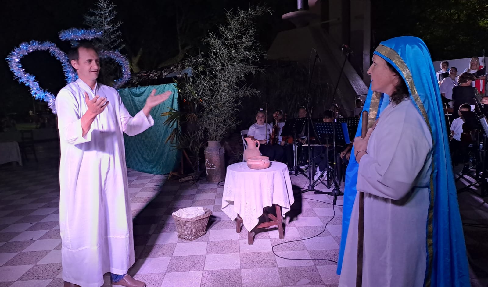 Todo comenzó con la Santa Misa en el anfiteatro, para luego derivar en el pesebre viviente. Tras el mismo, la orquesta interpretó dos canciones más: “Estrellita” y “Jingle bells”.