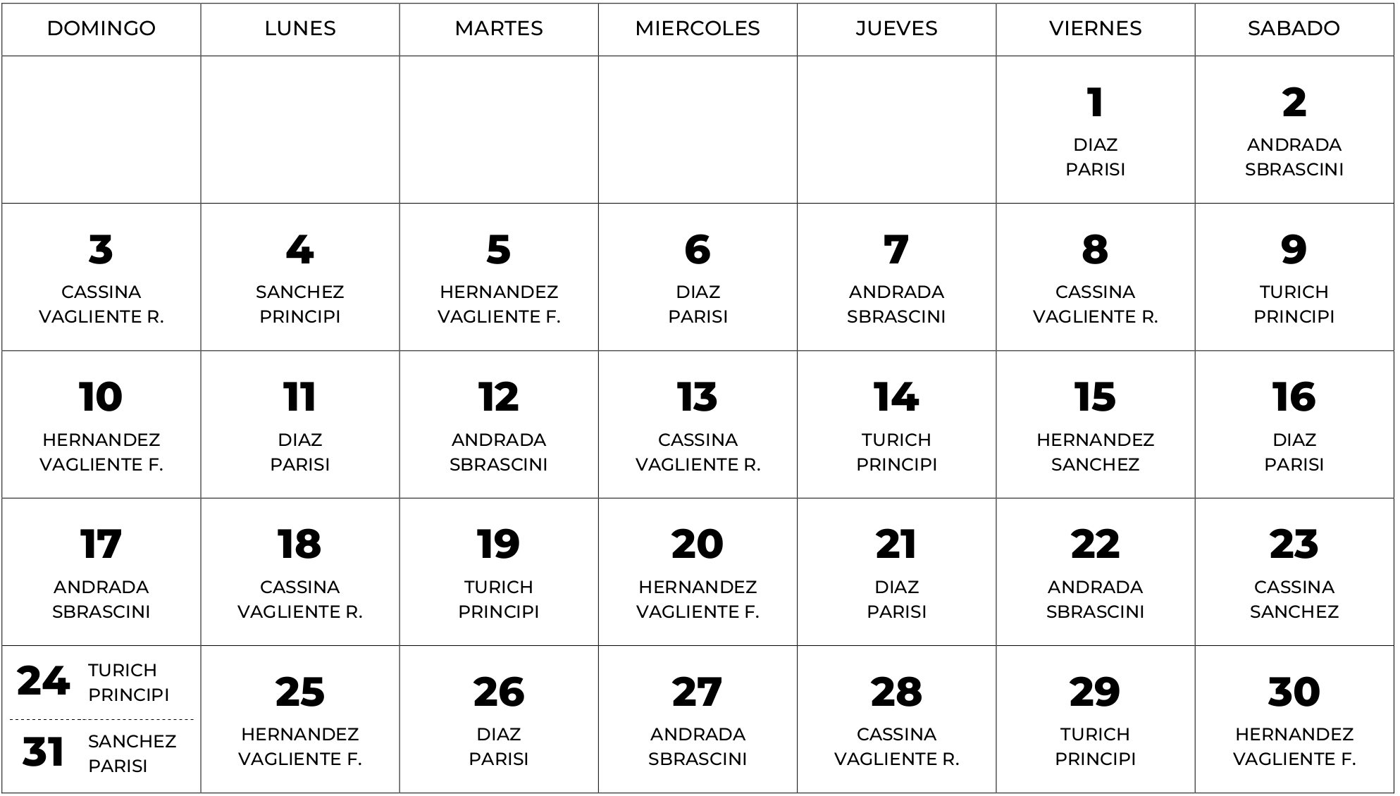 Horarios Guardia Nocturna de 22:00 a 6:00 hs.